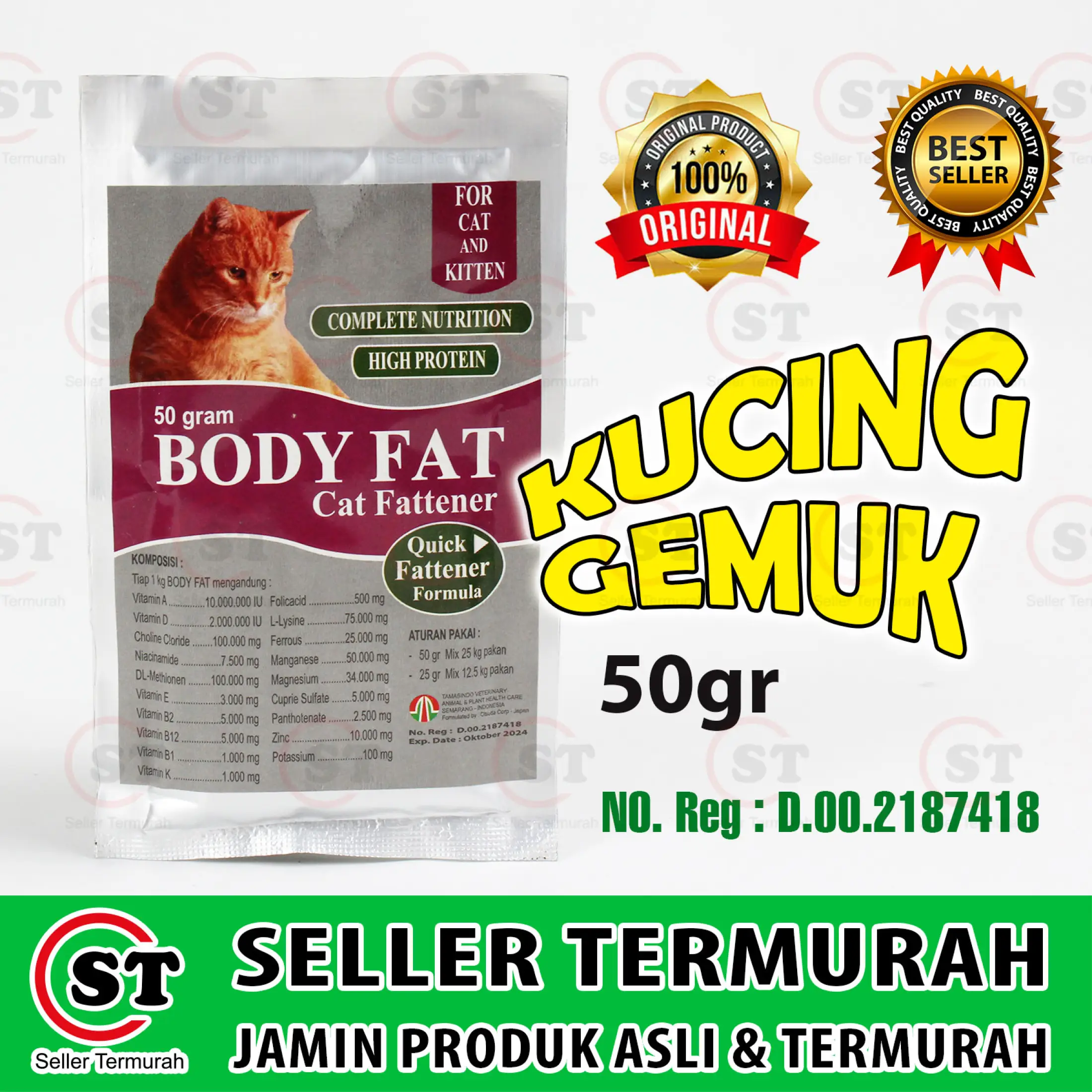 Body Fat Cat 50 Gram Penggemuk Kucing Super Cepat Bentuk Powder Penggemuk Anak Kucing 50gr Lazada Indonesia