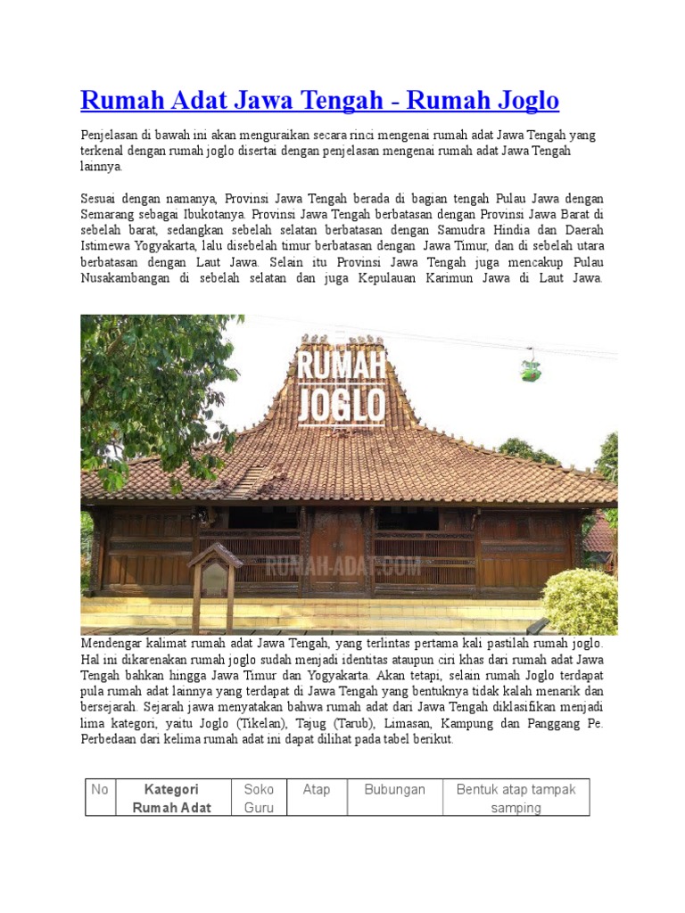 Rumah adat Jawa ini dahulu digunakan sebagai tempat berjualan. Apa saja jenis rumah adat yang ada di Jawa Tengah itu. Beberapa jenis rumah adat panggang pe yang ada di Jawa Tengah.